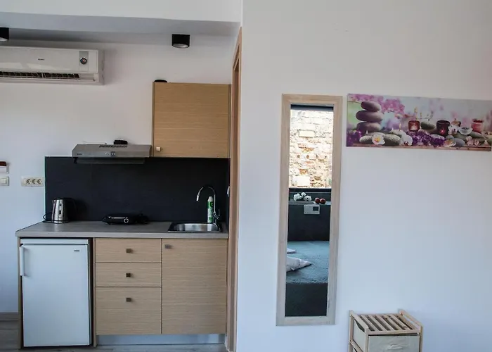 Здесь вы найдете мини-кухню. В них доступен холодильник и тостер. Ресторан ресторан Тамам находится в 15 минутах ходьбы от этих апартаментов и предлагает блюда европейской кухни. Апартаменты расположились менее чем в 10 минутах ходьбы от автобусной остановки Ethniki Trapeza.